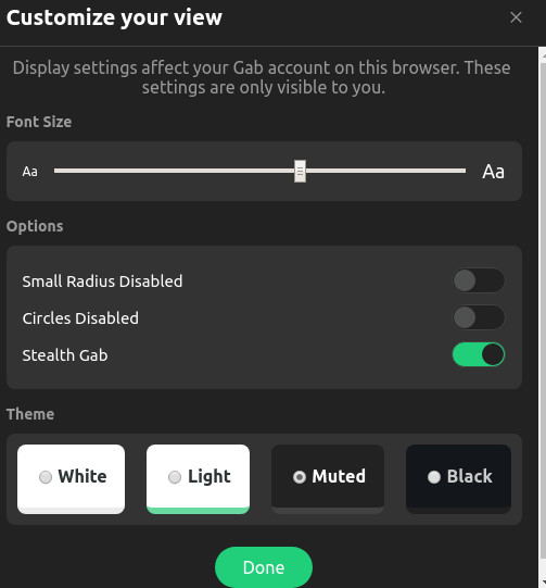 Once in "Display Options" you will have the option to switch between "White", "Light", "Muted", or "Black" followed by clicking on "Done" to save the changes.