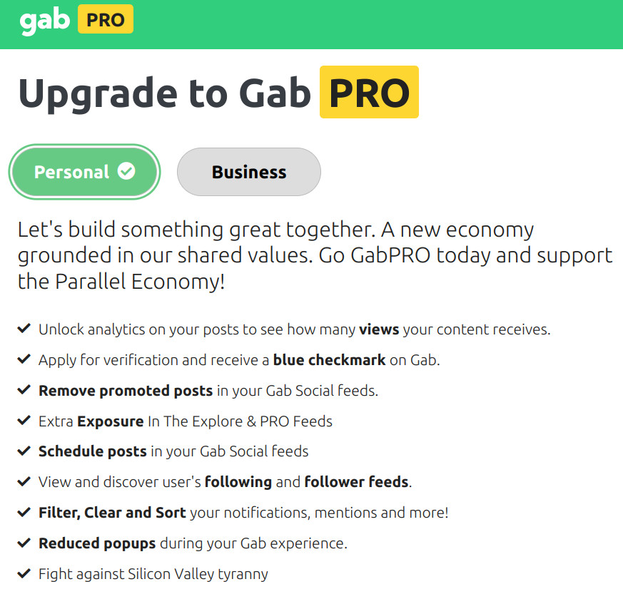 Select either Personal or Business